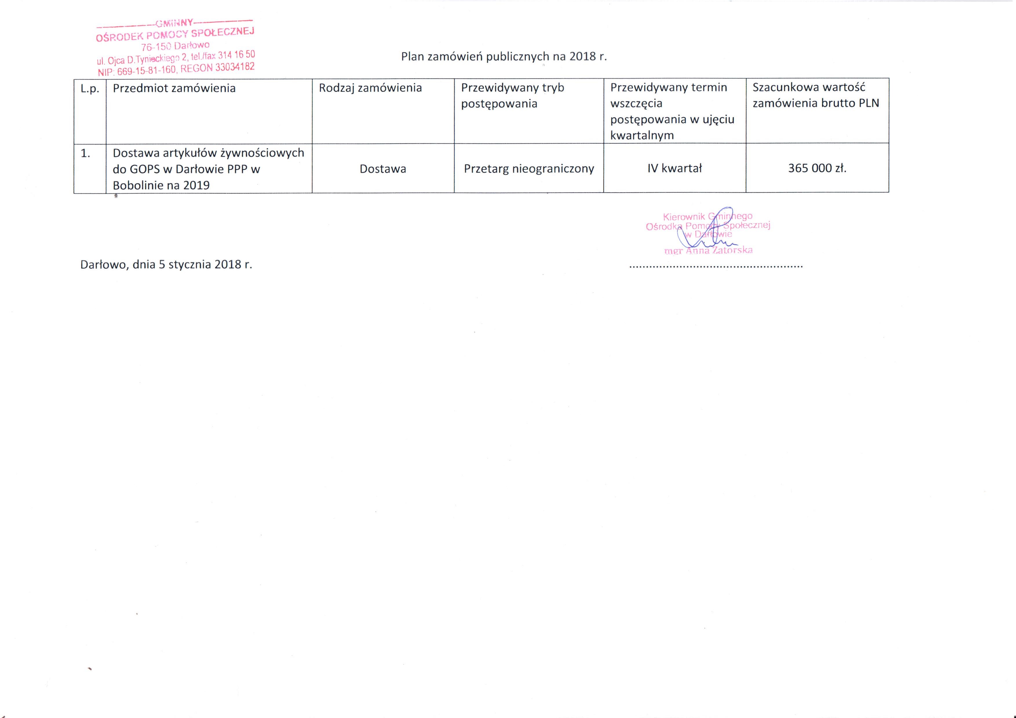 Plan zamówień 2018 r.