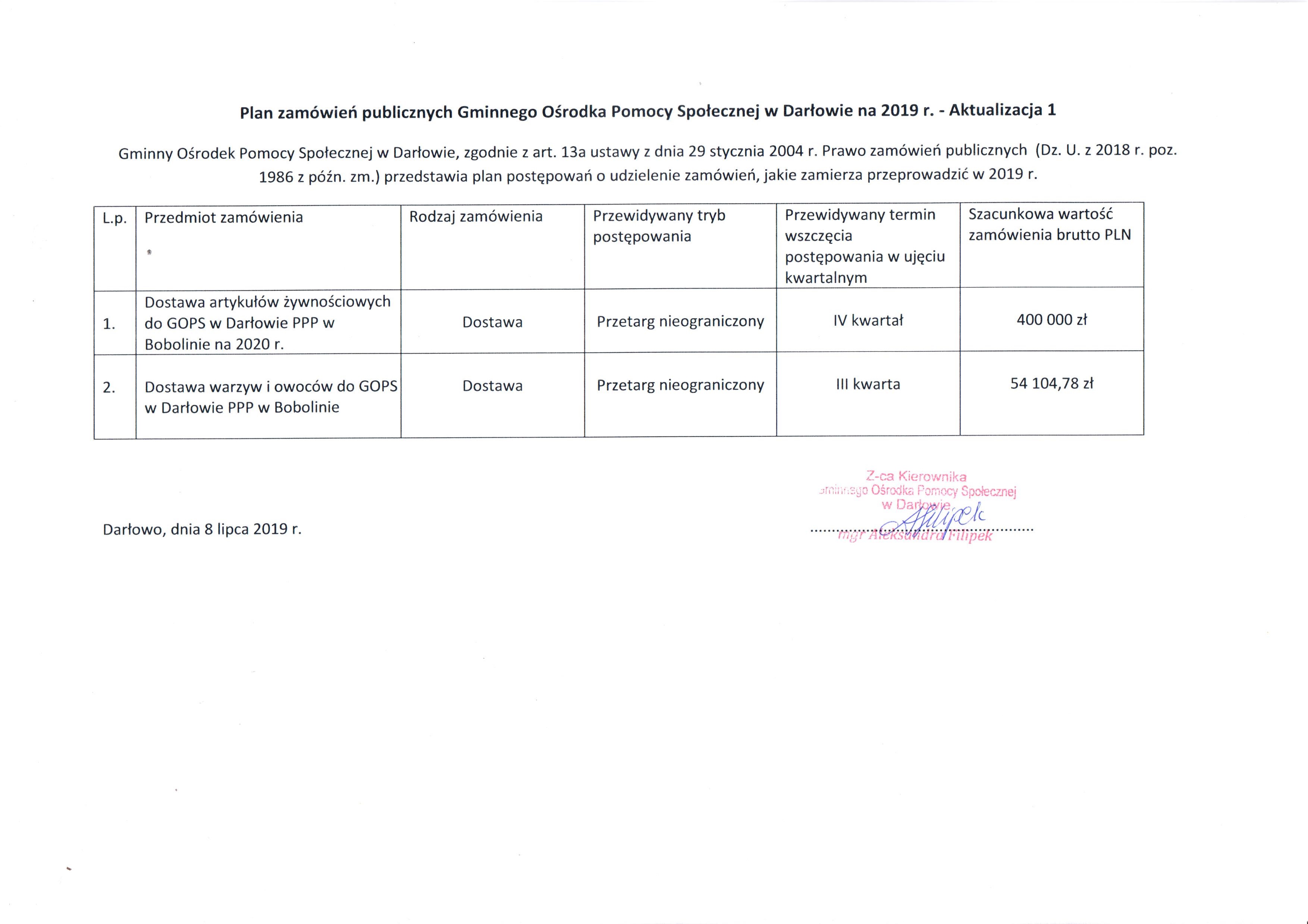 Plan zamówień na 2019 r. aktualizacja 1
