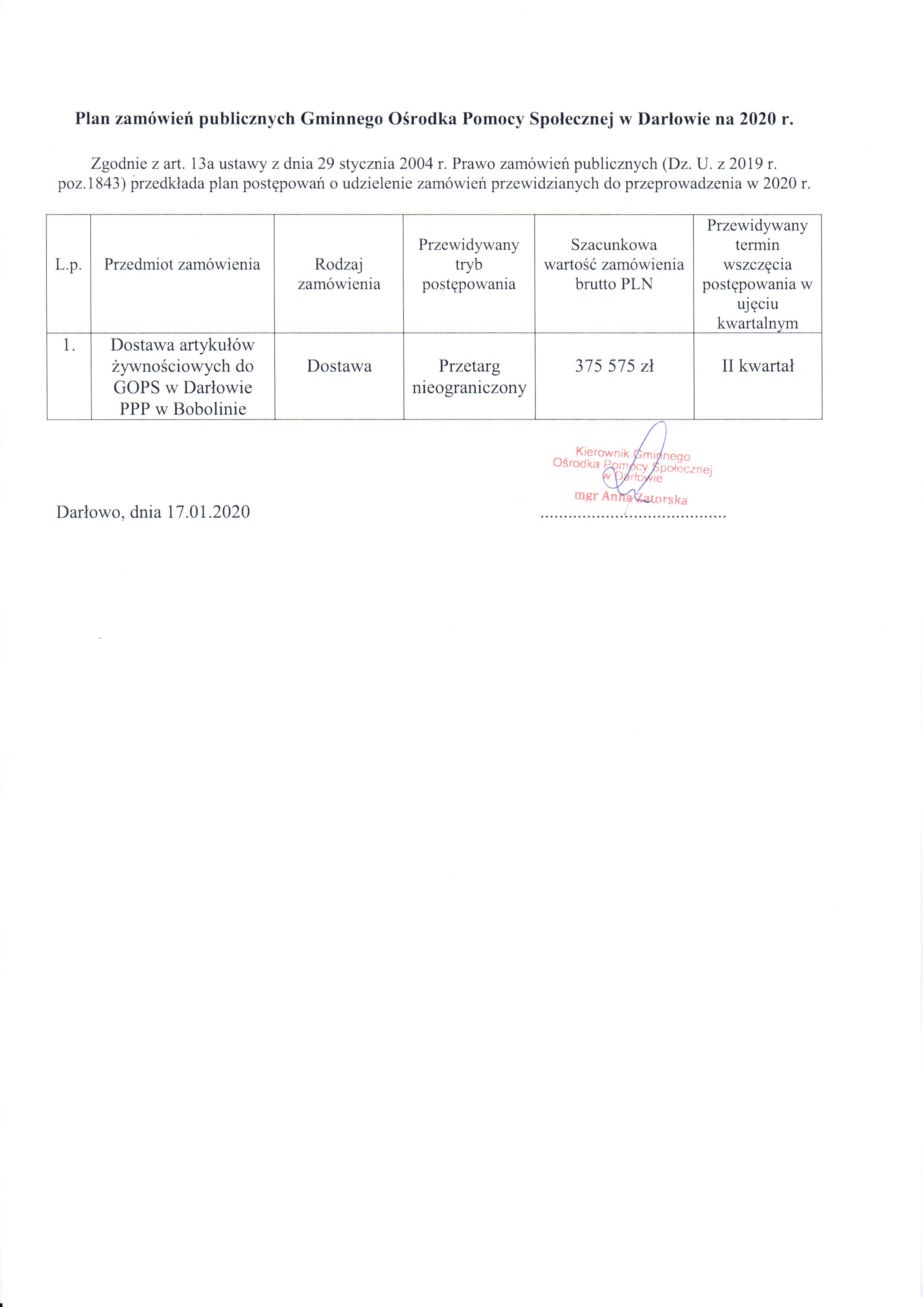 Plan zamówień 2020